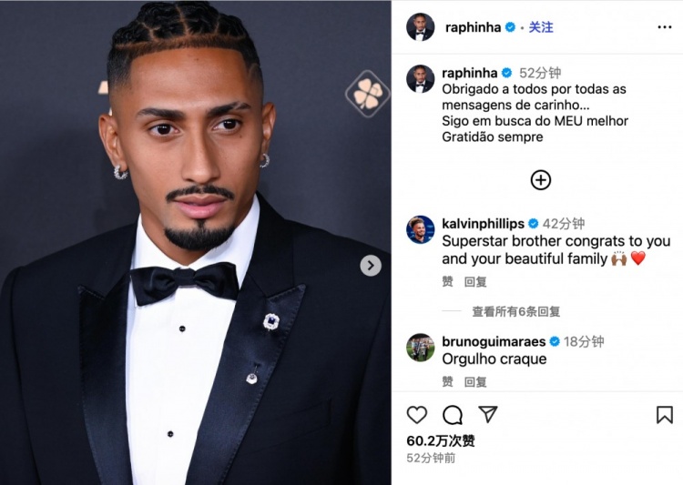 9月24日讯 本周二晚,巴萨翼锋拉菲尼亚在个人INS上发文,英超比赛在线观看无插件谈到了自己在金球奖颁奖典礼后的状况。