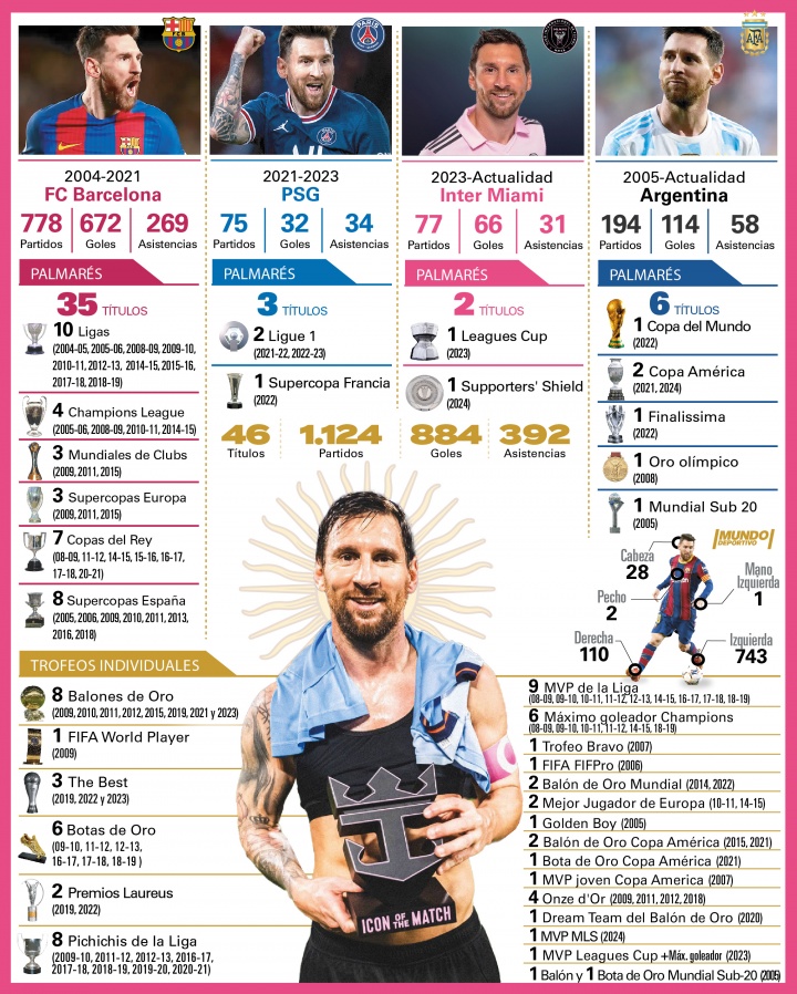 09月25日讯 世界体育报更新社媒,一图总结梅西最新生涯荣誉、数据等内容。
