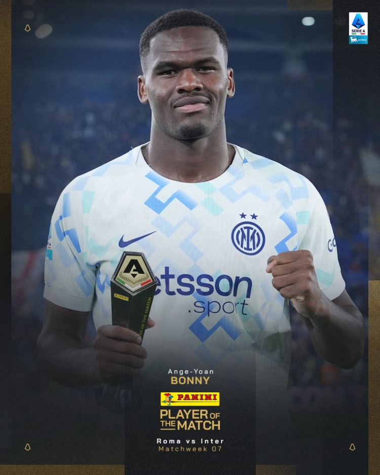 意甲第7轮赛事 ,博尼攻入全场唯一得分 ,帮助国米客场应战 1-0击败罗马。