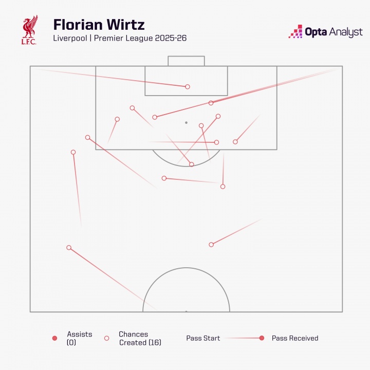 据数据统计 ,24直播网维尔茨在英超职业联赛 中12次射球 均未破门,同时他创造的16次机会也未能转化为助功 。