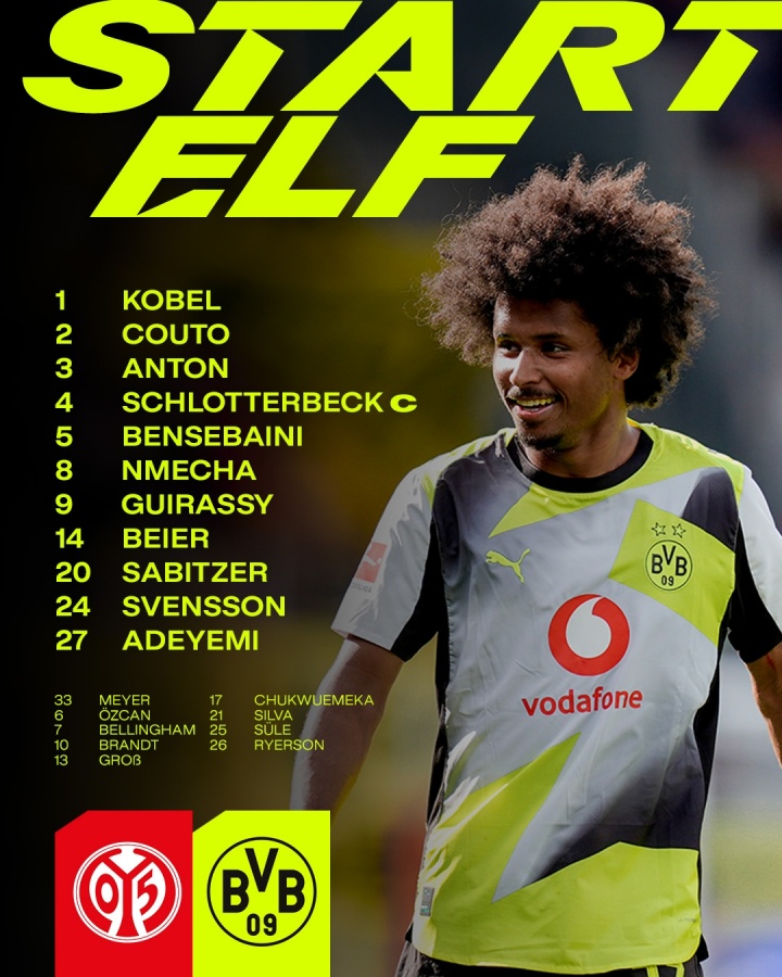 09月27日讯 德甲第5轮,多特客场应战 应战 美因茨,双方杆位名单公布,本场赛事 ,多特今夏的标王小贝林厄姆继续后备 ,这已经是他连续第四场后备 。