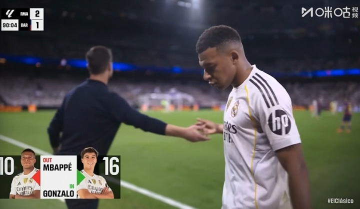 10月27日讯 皇马vs巴萨第90分钟,姆巴佩被贡萨洛换下,英超比赛在线观看无插件全场鼓掌。姆巴佩下场后与贡萨洛以及阿隆索击掌致意。