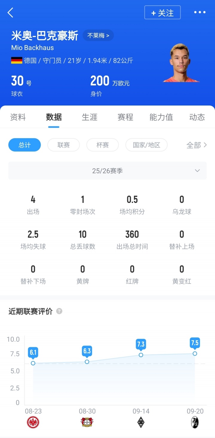 巴克豪斯,现年21岁,本赛季开始成为不莱梅主力守门员,共出战4场赛事 ,丢掉10球,完成1次零封,目前德回转 价200万欧。