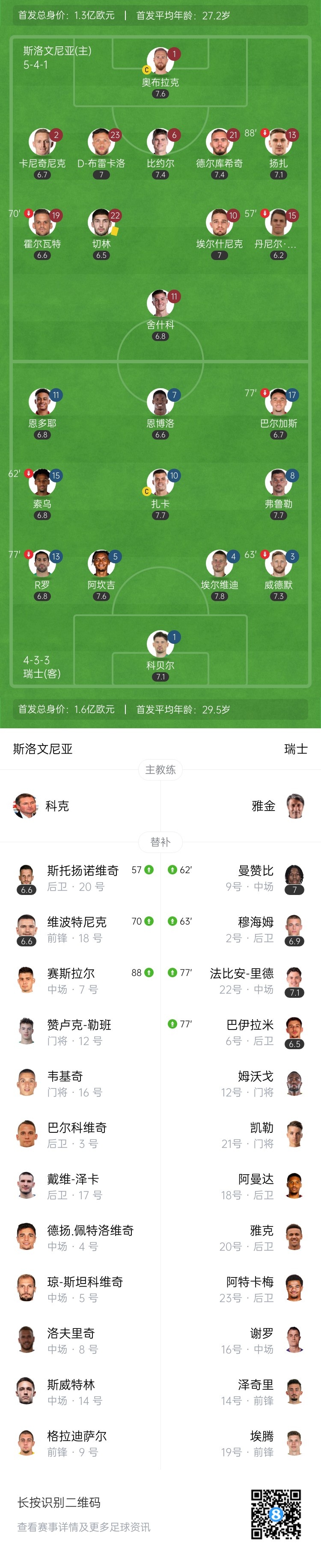 10月14日讯 世预赛欧洲区小组赛B组第4轮,斯洛文尼亚0-0战平瑞士。